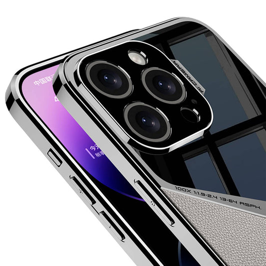 iPhone 14 Pro Ultra Thin Original GKK X-Shape PC + Leather Case - Titanium Grey
