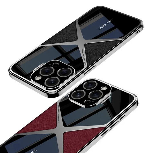 iPhone 14 Pro Ultra Thin Original GKK X-Shape PC + Leather Case - Black