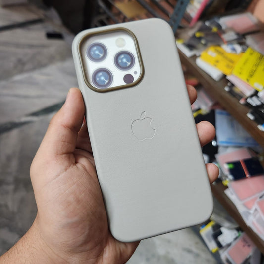 iPhone 15 Pro Leather Case Original Luxurious Premium Quality leather Case - Grey