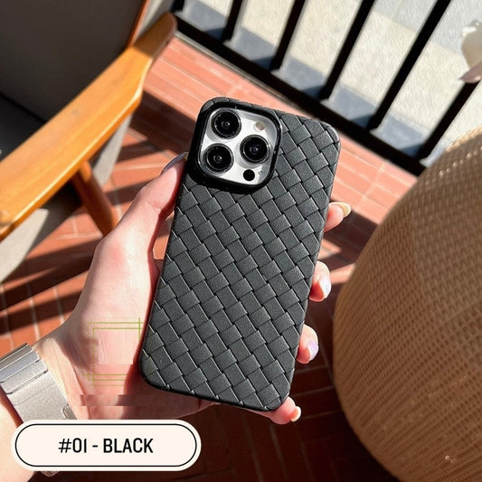 iPhone 15 Pro Luxury Weave Breathable Cooling Matte Soft Silicon Grid Case - Titanium Grey / Black
