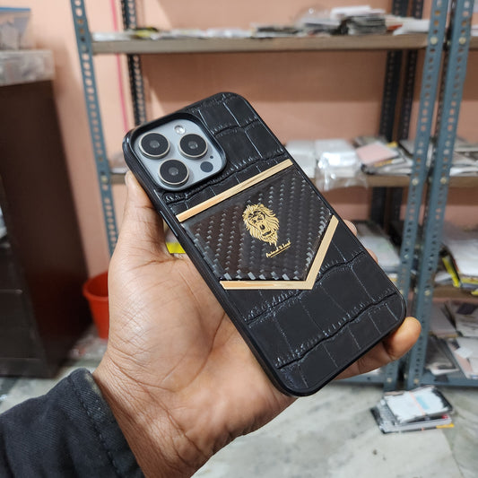 iPhone 15 Pro Max Shockproof Crock & Carbon Pattern Hugo Case (Animal Lord Series)