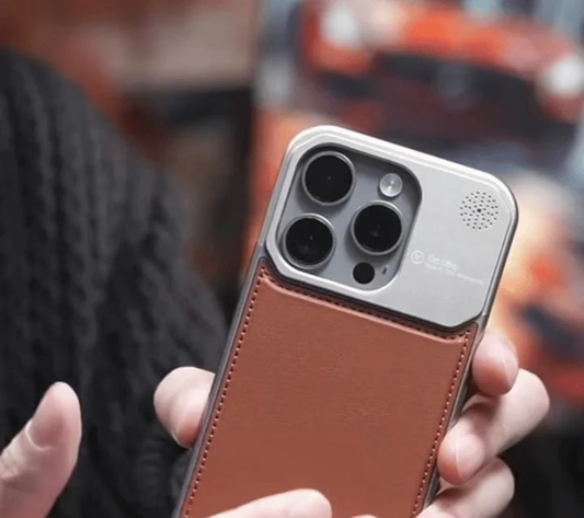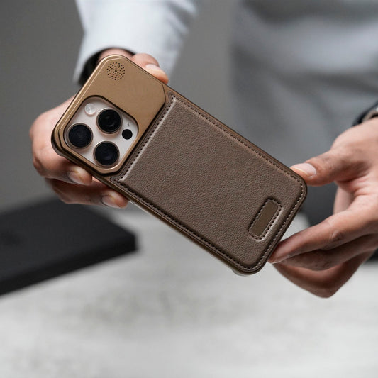 iPhone 15 Pro Max Super Slim AeroFLex Metal Frame Less Vegan Leather Case with Magsafe - Titanium Brown