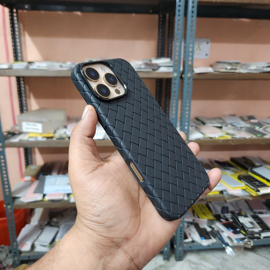 iPhone 16 Plus Luxury Weave Breathable Cooling Matte Soft Silicon Grid Case - Black
