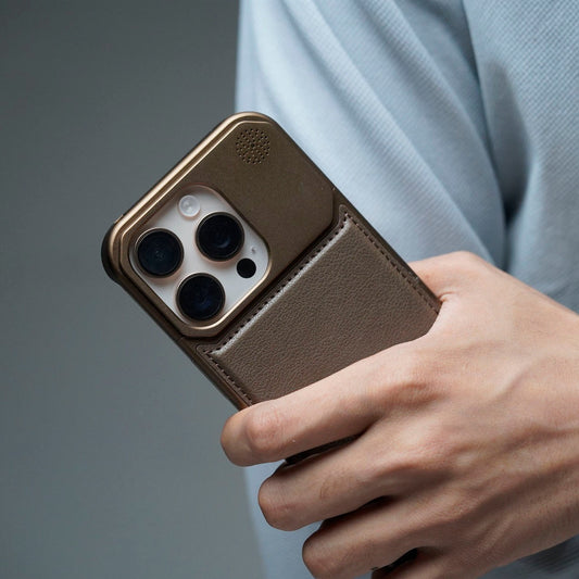 iPhone 16 Pro Max Super Slim AeroFLex Metal Frame Less Leather Case with Magsafe - Titanium Brown