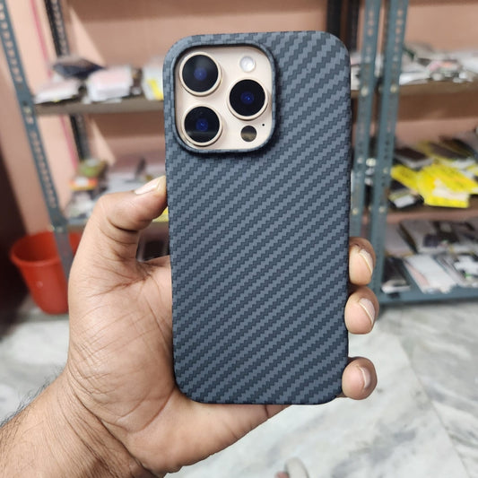 iPhone 16 Pro Max Super Slim Carbon Fiber Texture Anti - Fingerprint Hard Case - Black