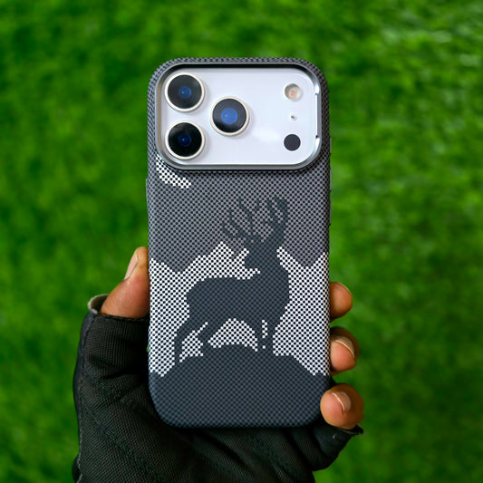iPhone 17 Pro Aramid Carbon Fiber "Deer in Night" Texture 0.8mm Thin Cover with Magsafe - Grey