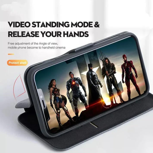 iPhone 17 Pro Leather Magnetic Flip Case with Card Slot and Kickstand - Black