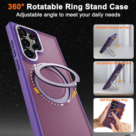 Samsung Galaxy S23 Ultra 360° Rotatable Magnetic Ring with Magsafe Scratchproof Translucent Matte Kickstand Case - Deep Purple