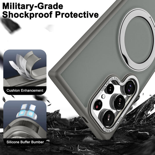 Samsung Galaxy S23 Ultra 360° Rotatable Magnetic Ring with Magsafe Scratchproof Translucent Matte Kickstand Case - Titanium Grey