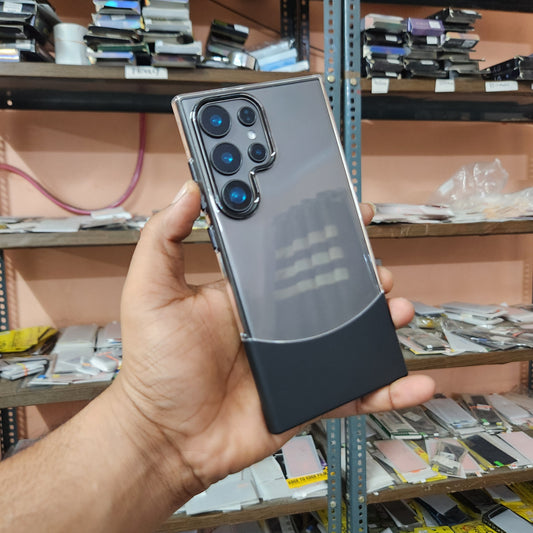 Samsung Galaxy S24 Ultra Premium Stylish Anti Yellowing Half Crystal Bottom Hard Case - Black
