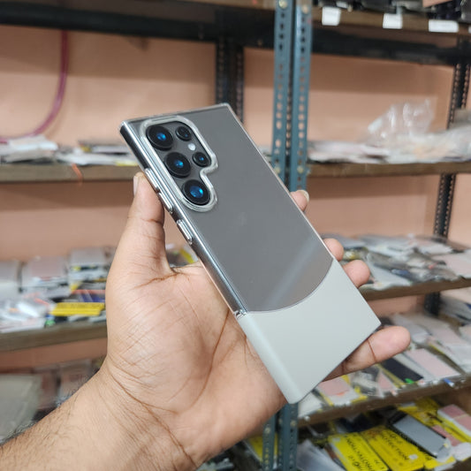 Samsung Galaxy S24 Ultra Premium Stylish Anti Yellowing Half Crystal Bottom Hard Case - Titanium