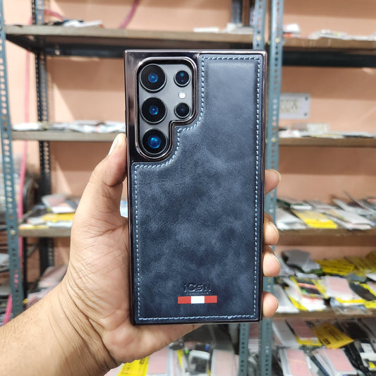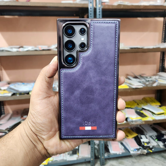 Samsung Galaxy S24 Ultra Super Slim Premium Quality Genuine Leather Case - Black / Purple