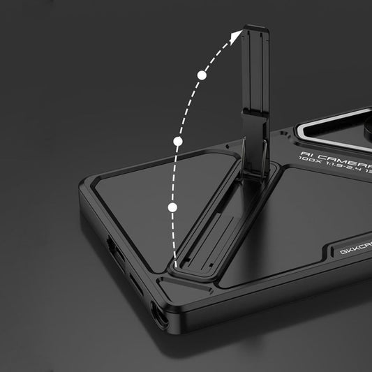 Samsung Galaxy S24 Ultra Stand Case, Hard PC Ultra Slim Built-in Camera Glass Protector Kickstand Case - Black