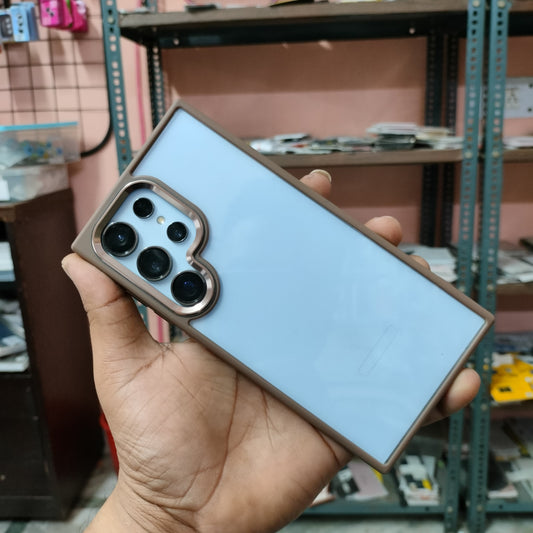 Samsung Galaxy S24 Ultra Transparent Case, Shockproof Hybrid Metal Camera Back Cover Case - Titanium Brown