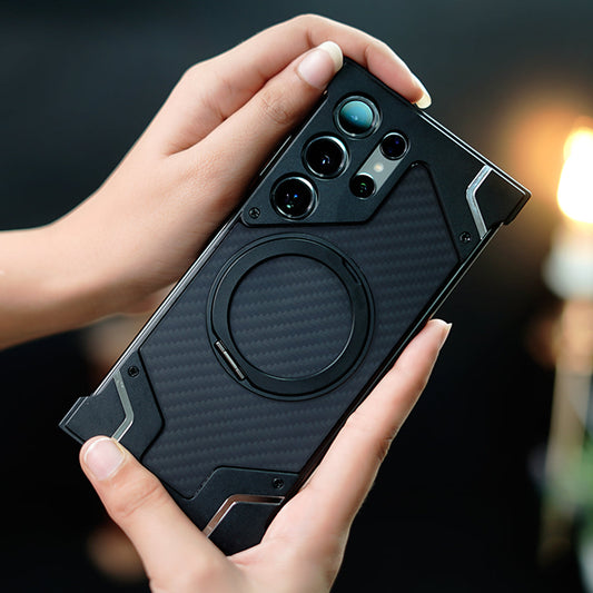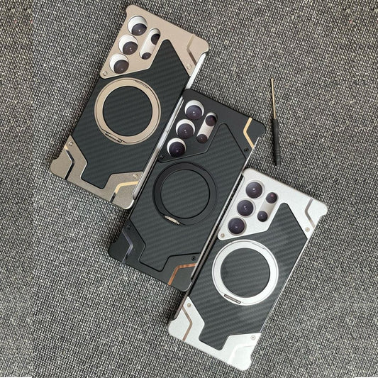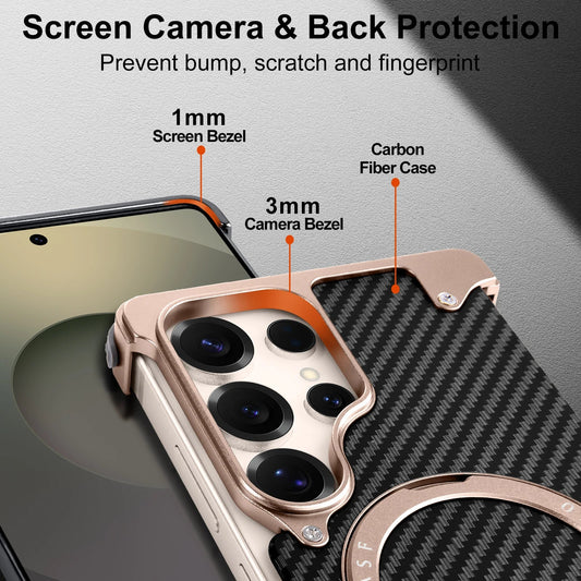 Samsung Galaxy S25 Ultra Metal Case, Frameless Carbon Leather Magnetic Invisible Stand Cover