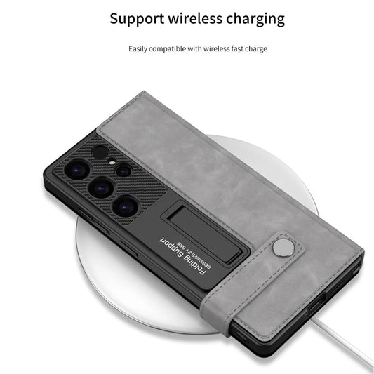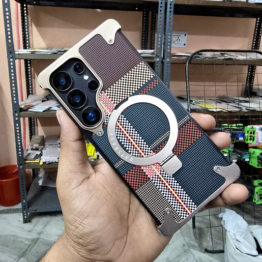 Samsung Galaxy S25 Ultra Metal Case, Frameless Leather Magnetic Invisible Stand Cover