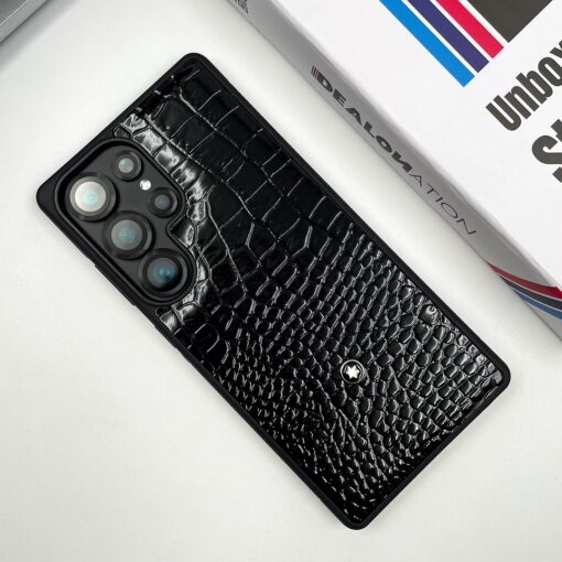 Samsung Galaxy S25 Ultra Leather Case, Luxury CROC Pattern Premium Leather - Black