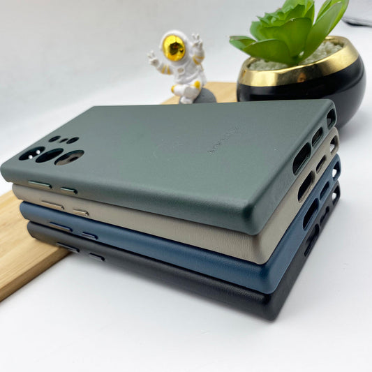Samsung Galaxy S25 Ultra Leather Case, Vegan Leather Back Cover - Black