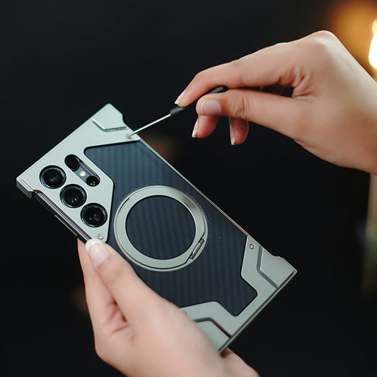 Samsung Galaxy S25 Ultra Metal Case, Frameless Metal Carbon Cover Kickstand 360° Rotation Ring