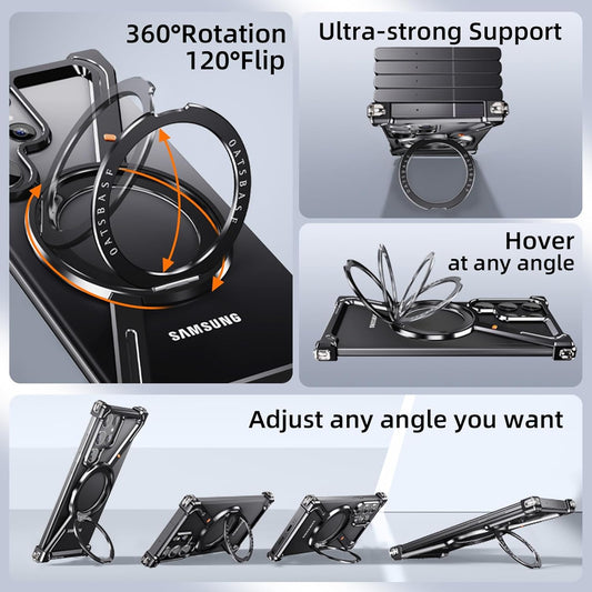 Samsung Galaxy S25 Ultra Metal Case, Frameless, Kickstand with MagSafe Cover - Black
