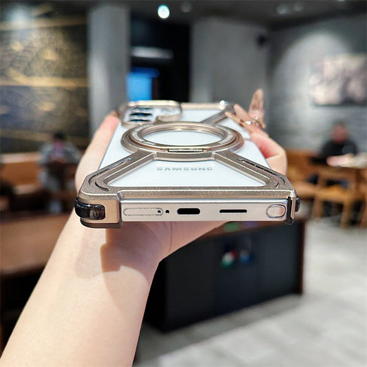 Samsung Galaxy S25 Ultra Metal Case, Frameless, X-Shape Kickstand MagSafe Cover - Black