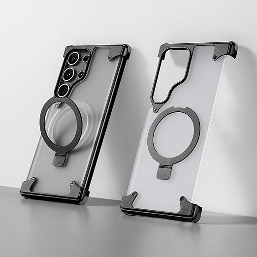 Samsung Galaxy S25 Ultra Metal Case, Frameless Thin Smoky Magsafe Cover Invisible Kickstand - Black