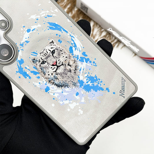 Samsung Galaxy S25 Ultra Nimmy Case, 3D Embroidery Snow Leopard Leather Case with Magsafe - White