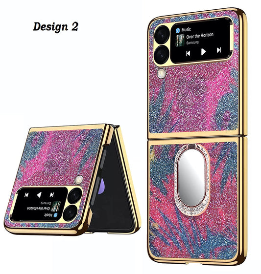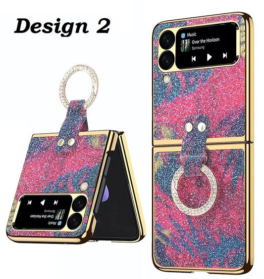 Samsung Galaxy Z Flip 4 Slim Case With Ring Shiny Bling Diamond Plating Case