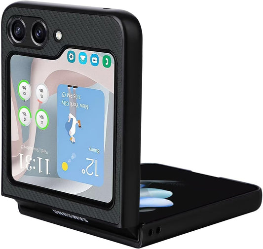 Samsung Galaxy Z Flip 5 Leather Carbon Fiber Slim Fit Case- Black