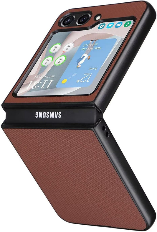 Samsung Galaxy Z Flip 5 Leather Carbon Fiber Slim Fit Case- Brown