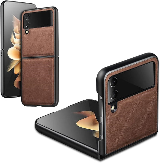 Samsung Galaxy Z Flip 4 Plain Leather Case-Brown