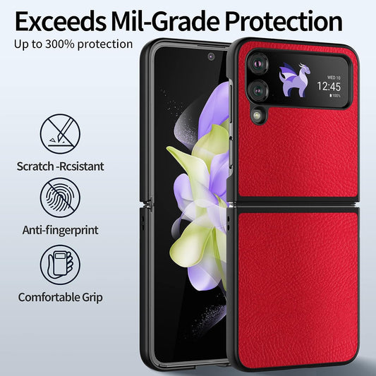 Samsung Galaxy Z Flip 4 Plain Leather Case-Red