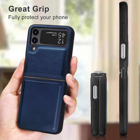 Samsung Galaxy Z Flip 4 Leather Carbon Fiber Slim Fit Case- Blue