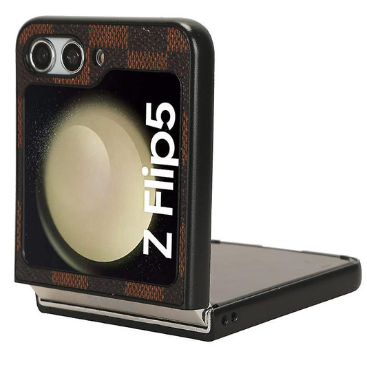Samsung Galaxy Z Flip 5 Check Pattern Leather Back Case-Brown