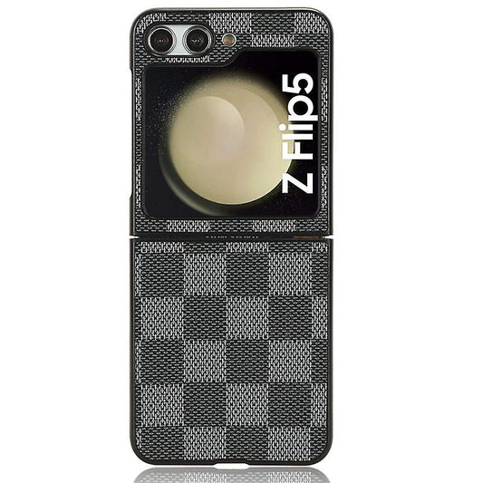 Samsung Galaxy Z Flip 5 Check Pattern Leather Back Case-Black