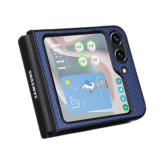 Samsung Galaxy Z Flip 5 Leather Carbon Fiber Slim Fit Case- Blue