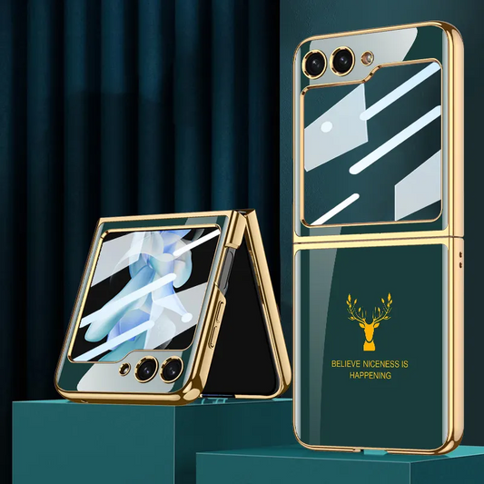 Samsung Galaxy Z Flip 5 Deer Pattern Glass Case-Dark Green