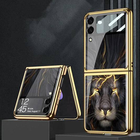 Samsung Galaxy Z Flip 4 Lion Pattern Glass Case