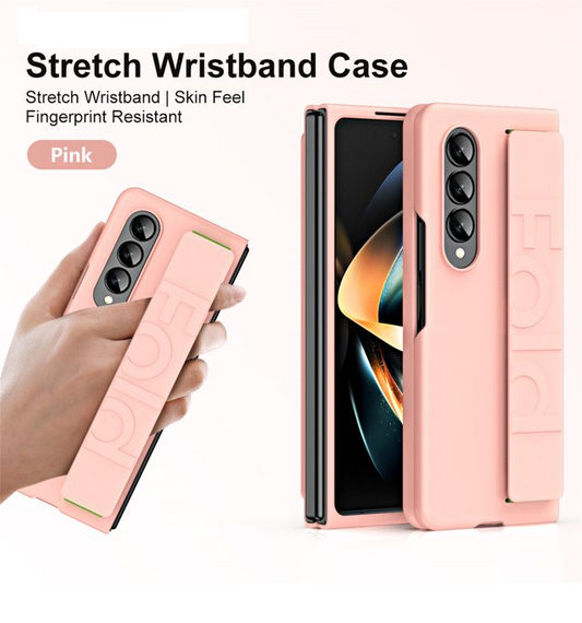 Samsung Galaxy Z Fold 4 Hand Strap Full Protective Hard PC Case- Pink