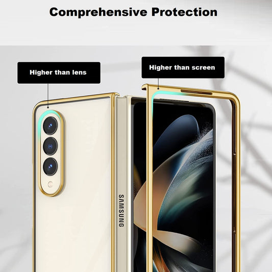 Samsung Galaxy Z Fold 4 Electroplated Frame Transparent Back Cover-Gold