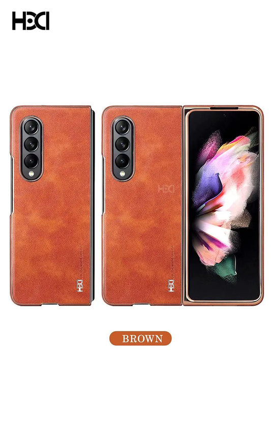 Samsung Galaxy Z Fold 3 Slim Golden Line Luxury Leather Case