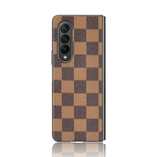 Samsung Galaxy Z Fold 4 Check Pattern Leather Back Case-Brown