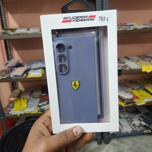 Samsung Galaxy Z Fold6 Liquid Silicon Ferrari Logo Case Sport Car Design - Black