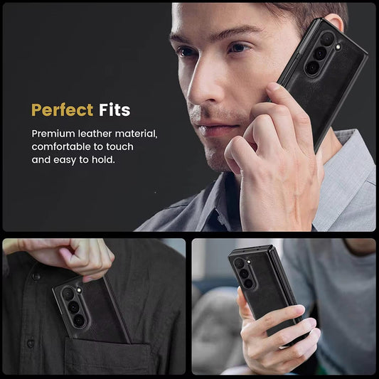 Samsung Galaxy Z Fold6 Original Santa Barbara Kent Series Leather Case with Hinge Protection - Black