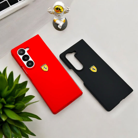 Samsung Galaxy Z Fold6 Leather Ferrari SF Logo Case Sport Car Design - Black