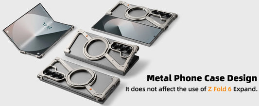Samsung Galaxy Z Fold6 Metal Case, Frameless Z Shape Metal Bumper Magsafe Case 360° Rotation Ring - Titanium