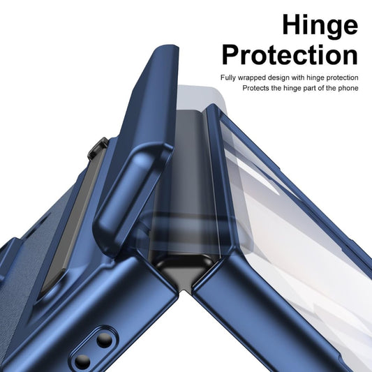 Samsung Galaxy Z Fold6 Leather Case, Electroplating S Pen Case with Kickstand & Hinge Protection - Blue