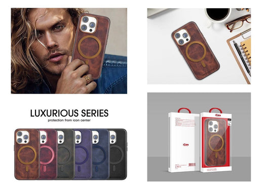 iPhone 14 Pro Luxurious Leather Magsafe Case - Brown