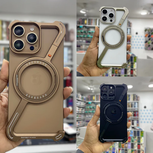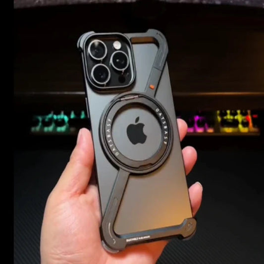 iPhone 16 Pro Max Z-Shape Metal Case Frameless Metal 360 Holder MagSafe Phone Case with Kickstand - Black
