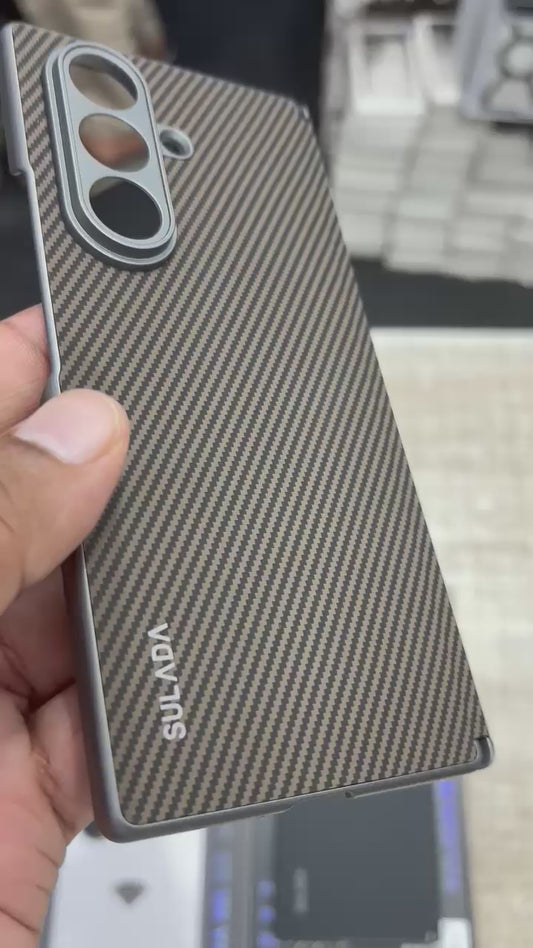 Samsung Galaxy Z Fold7 Carbon Case, 0.6mm Thin Carbon Fiber Kevlar Case - Black
